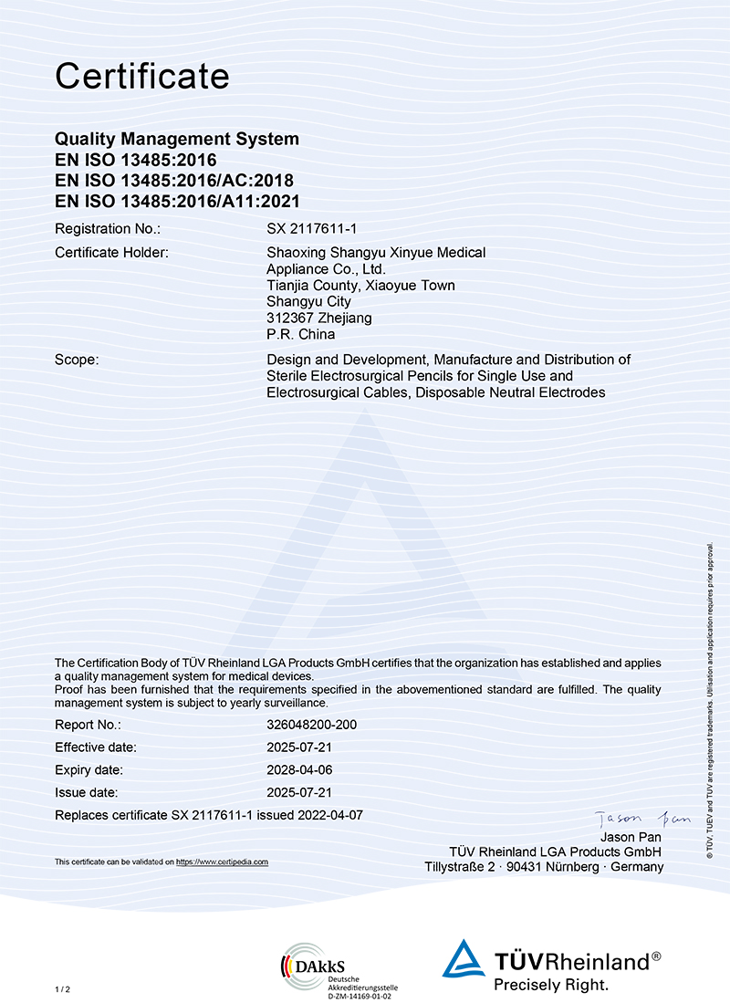 Shaoxing Shangyu Xinyue Medical Equipment Co., Ltd. is a professional company specializing in the production of "high-frequency electric knives and high-frequency electrodes." Currently, its main products include high-frequency standard electric knives, as well as various shaped, types, and specifications of metal knife heads, along with medical connection wires.